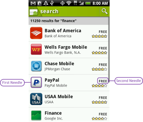 Visual relation inline - indicates the type of alignment between the first needle (PayPal in the example) and the second needle (FREE).