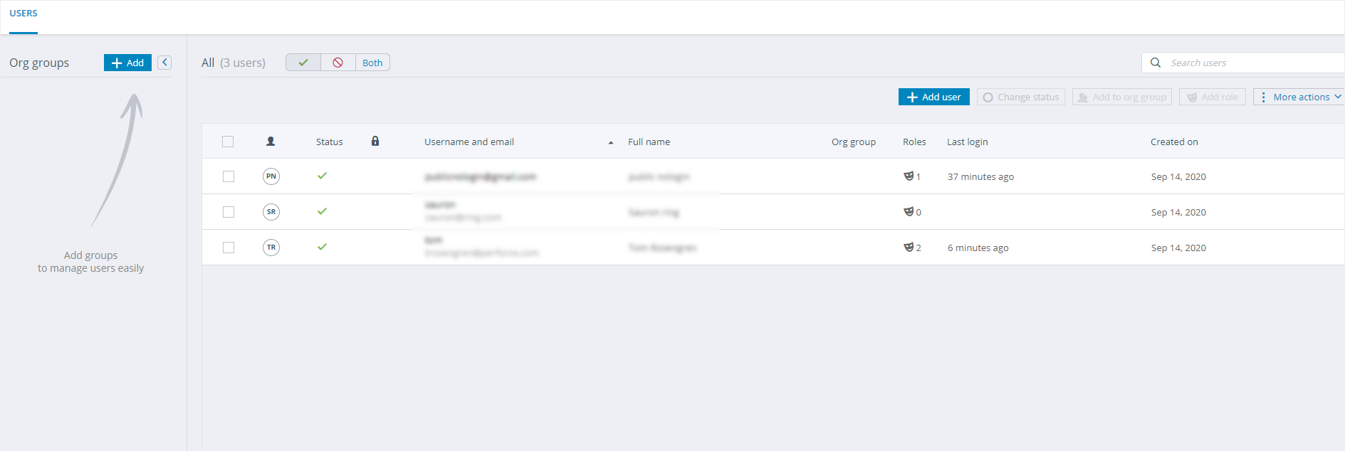 Groups are useful for organizing users within Perfecto, for example by manager, project, or other criteria that work well for your team. Groups do not impact a user's access privileges within Perfecto. Those are controlled by roles.